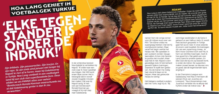Zijn dribbels. Zijn passeeracties. Zijn trucjes. En zijn raps. Ze zijn sinds eind januari niet langer bij Napoli te zien of te horen, maar bij Galatasaray in Turkije. Noa Lang voetbalt in een voetbalgek land bij een club met superfanatieke fans. Daar wilden we als PANNA! alles over weten! "Bondscoach Ronald Koeman waarschuwde me al dat Galatasaray groter is dan ik zou verwachten."
